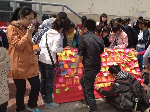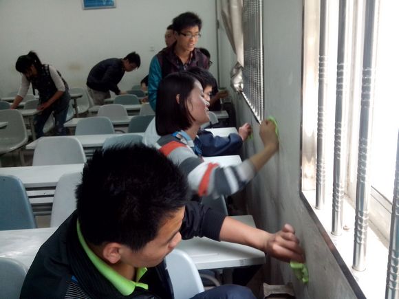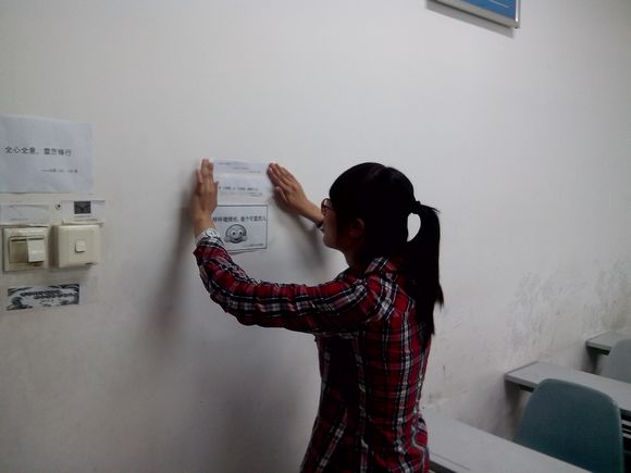 此次活动分两方面展开。一方面,组织同学们利用抹布、小刀等清洁工具,努力将教室变得整洁、干净,并在八号楼的各个教室张贴宣传小贴士,提醒广大同学爱惜校园环境,抵制“墙文化”。另一方面,开展了抵制“墙文化”的倡议签名活动,同学们纷纷签名、张贴心愿纸,表达了自己的意愿。