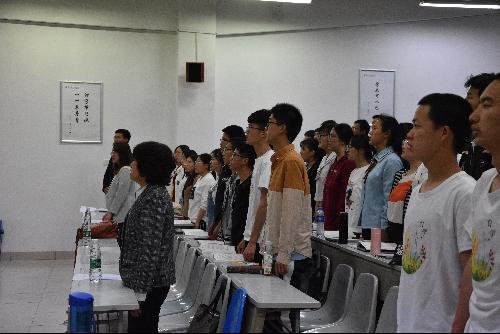 会议第一项,全体成员起立,齐唱国歌。第二项,康霓老师宣读培训安排,第三项入党积极分子员工代表崔志峰发言。