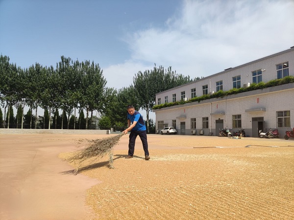 老师和同学们一起在田间地头“并肩战斗”,拉开了“三夏”忙季的大幕。夏收是“三夏”最关键一环,既关系“丰收在望”能否转化为“丰收到手”,也关系腾茬后夏种能否顺利进行。丰收的喜悦,洋溢在同学们的脸上。参加夏收的毕业生们面对着眼前这块试验地更是感触颇深,在麦子成长过程中既感受到了生命意义,也明白了了扎扎实实干事,踏踏实实做人的道理。人生万事,不过种和收,踏踏实实播种下什么,就会收获什么。种好,才能收好。 “摊麦时尽量要摊均匀,摊越薄晒干的效果越好,麦子在入仓前应该再扬一次,完全把麦堆内的麦糠,麦灰清理出去”聂老师在晒麦时说道。