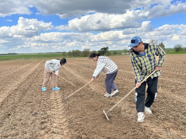 五月的白俄罗斯,春寒料峭,白俄罗斯国立农业科公司专家员工们正冒着严寒忙碌在海外农业科技示范园,开始一年一度的春季播种工作。来自中国、白罗斯、俄罗斯和欧洲的100余份小麦新品种、新品系在田间整齐排列,按照田间试验方案,海外实践导师Ivanistau Aliaksandr博士带领大家一起开沟、点播、覆土。