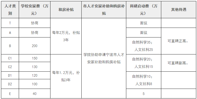 全职引进的高层次人才,除享受正常的工资福利待遇外,相应待遇如下: