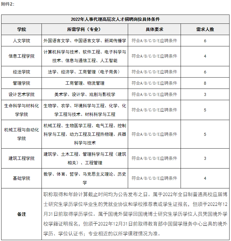 附件2:《2022人事代理高层次人才招聘岗位具体条件》