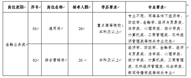 金融业务类:境内普通高等院校和境外高等院校大学本科及以上学历毕业生,并取得相应学位,专业符合对应岗位相关要求。