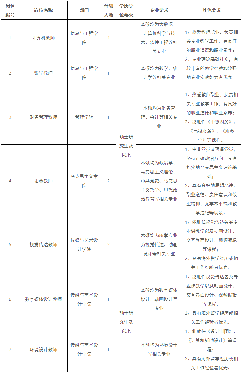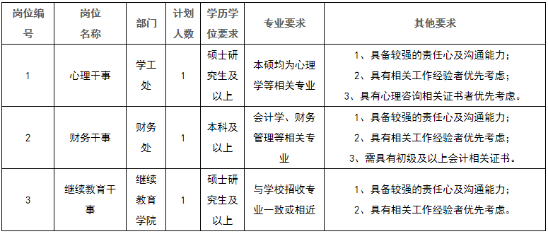 2.专职教师岗位:由考核小组采取试讲(具体试讲内容另行通知)+面试方式进行考核,主要考查应聘者基本教学能力。