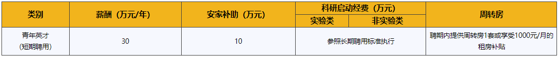 “青年英才”可采取全职长期聘用或全职短期聘用方式引进。