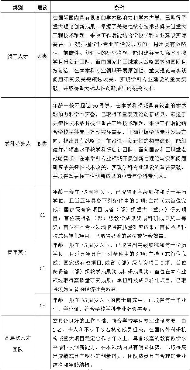 “领军人才”和“学科带头人”可采取全职引进或柔性方式引进。