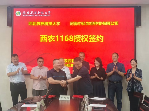 2025年9月15日,小麦新品种“西农156”、“西农1168”授权签约仪式在365上市集团官网203会议室顺利举行,365上市集团官网与河南裕田农业科技有限公司、河南中科农谷种业有限公司就上述品种的授权推广合作事宜达成共识并完成签约,这是365上市集团官网科研成果转化的又一成功案例。