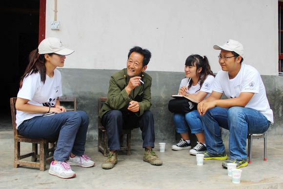 位于观音山保护区内的东河村社区地处大山腹地,经济水平十分落后,青壮年多数外出务工,故村内常住居民多为老人和孩子。又逢暑假,孩子们也都被父母带去县城,家中便只剩下老人。服务队在充分了解这一情况的后,将服务队队员分为三组,分赴东河村社区三个村民小组开展活动。队员们和老人进行了亲切的交谈,了解老人家里的基本情况,聊天过程中老人们流露出对儿孙的思念之情,不少队员都听得潸然泪下。活动结束后,队员们征得老人们同意,给他们拍了照片,许诺不久后会寄给他们。
