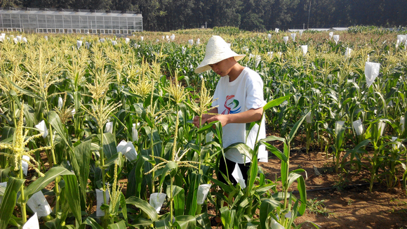 此次的活动主要内容为,对试验田中的玉米进行人工授粉。授粉虽然是一项并不复杂的工作,但是对于玉米遗传育种研究来说,能否进行正确、有效的授粉是保证研究成功的关键条件之一。在基地专家的带领下,队员们不仅学习了遗传育种基本原理和方法,还对企业如何培育和研发新的玉米品种有了深入的了解。虽然烈日当头,但同学们还是在一天的时间内,保质保量的完成了整个玉米试验田的授粉工作。与同学们一起工作的公司技术人员说:“以前总觉得老员工都是‘读书人’,没想到西农的老员工学习能力和动手能力都这么强。西农的员工踏实、肯吃苦,和他们一起工作很有干劲!”