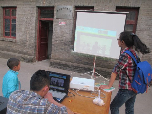 志愿者调试投影仪