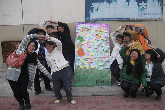 活动中,现场气氛极其热烈,许多路过的同学纷纷驻足,为他们的朋友、父母、老师写下了祝福,表达了感激之情。辅导员王娜老师也加入了活动,写下了自己的对命运,对人生的感激,并亲切地与同学合影留念。