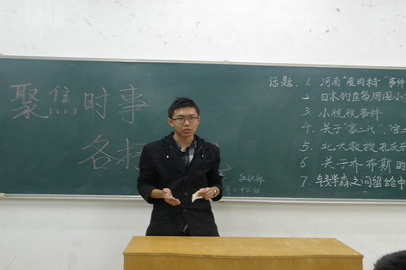 讨论课期间,同学们纷纷就“河南瘦肉事件”、“日本钓鱼岛周围小岛命名事件”、“北大教授孔庆东事件”等热点问题展开激烈讨论。并依次作了精彩发言。课后,同学们表示,经过这节课的思考与讨论,大家对道德素养有了更深的认知。