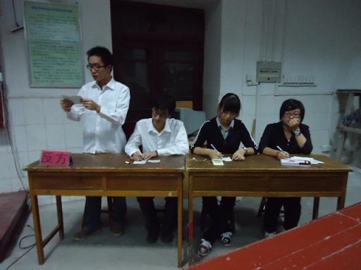 本场辩论赛和谐融洽。按照顺序,双方辩手展开答辩。双方唇枪舌战,互不示弱,赢得了在场同学多的阵阵掌声。最后互动问答环节中,观众都争相向正反两方提问,气氛很是活跃。
