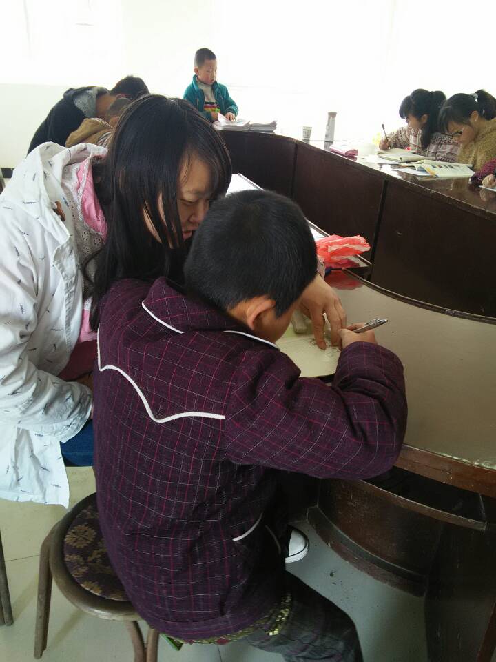 由于本院今天正在举办运动会,所以村助们只召集了四位大二的同伴,但是大家都激情依旧。九点,孩子们陆陆续续来到村委会的农家书屋,志愿者们也纷纷开始给这群孩子们一一辅导。遇到“难题”怎么办,大家一起来探讨,志愿者们给孩子们耐心指导,孩子们歪着脑袋认真听着,就这样老员工和小员工构成了一幅村中和谐,美好的画面。之后还有本院的董军同学们带孩子们练起了武术给孩子们解压,孩子们学的有模有样。在将来的支教过程中,大家打算让孩子们了解更多中国传统文化和从小树立正确的道德观,比如融入《三字经》、《弟子规》的教育,在他们的生活中能起潜移默化的作用。