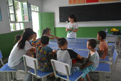 早晨八点左右枣园村的小朋友们都纷纷来到公司,孩子们见到队员都热情的打招呼,有的还奔跑过来拥抱。刚到教室,负责讲解地震和火灾演练的队员,就把准备好的材料给当地的小朋友,并以有奖竞答和实地演练的形式加深小朋友对课堂讲解的印象。为了充分调动小孩子们的兴趣,队员们特地准备了音乐课,听着孩子们稚嫩的嗓音,仿佛回到了童年无忧的时光。初中生的课程讲解也在持续进行,其中一位初中生表示,此次补习对他们知识点的巩固起到了很大的作用。