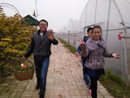 提前进行电话联系,合作社负责人罗叔叔便安排好工作等待着使者们的到来。首先很自豪地带领大家参观了最新建成的两座门楼,接着观察一栋在造建筑,只见房顶构造全由木头构成,传统木头工艺匠人们正在忙忙碌碌,这种场面让人大开眼界。参观之后罗叔叔准备了扫把、笤帚和簸箕等工具交给大家,带到大棚边上指定地方做清扫工作,冬天的路上落满了各种树叶,大家便把这些树叶扫到旁边的菜地里,既方便清理又可以作为肥料,大家动手能力很强,热情高涨,不到一个小时便做完了清扫工作。工具归还库房后阿姨又找出菜篮子和小铁锹以及几双手套,带领大家到韭菜地里除草,然后将草上的泥土抖落装到菜篮里,可以拿回去作为饲料喂养家禽。