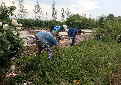 随后,田园使者们跟随工作人员来到一处玫瑰苗圃,进行苗圃的除草与养护工作。除草看似简单,实则比较耗费体力,过程中还要小心植物尖刺和蚊虫叮咬。苗圃虽然范围不大,但是杂草不少,田园使者们经过将近一个小时的共同努力,把苗圃中的杂草除尽。这次活动从最基本的工作入手,让同学们认识到了勤劳与耐心在农业生产中的重要性。队员们决心珍惜这次田园使者活动的机会,做好以后的志愿活动。