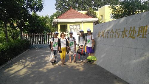 调研队了解到,十多年来很多无污水处理设备的工厂都被强制关闭,并且环保局一直严密监控小韦河的水质变化,才使得小韦河从“黑臭河”变得清澈。下午,队员们根据环保局局长的指示来到了扶风百合污水处理公司,一进去就闻到一股刺鼻的臭味,环视厂内,两座大型的污水处理池映入眼帘,臭味就是从处理池中散发出来的。在门卫大爷的带领下,队员们见到了一位热情的经理,并向队员们介绍了扶风县居民的用水情况以及处理公司的污水来源,讲解了污水处理的具体原理与流程,提高了队员们对于污水处理的认识。随后经理带领队员们参观了控制室和污水处理全过程,在参观过程中,队员们了解到,污水处理场现在面临的最大问题是污泥的处理:首先,污泥排放总量过大超出了处理能力;其次,污泥资源化利用研究遇到了瓶颈。