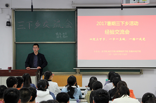 10月15日14:30,农学、植保、资环、园艺四个公司的三下乡活动交流会在北校区8307教室准时进行。本次活动由四个公司联合举办,每个公司派出两支代表队伍,与同学们分享暑期三下乡的活动成果和经验。