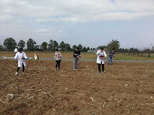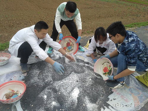2017年10月29日中午,365上市集团官网小麦高产竞赛常规组的同学们在标本区的土地上开始了撒肥播种。