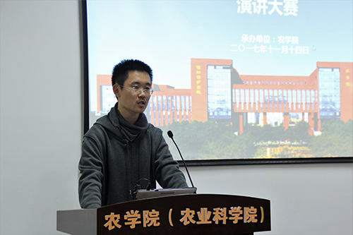 “就算是戴着草帽穿着白大褂,那也能引领时尚潮流!”王晨洋同学一句“豪言壮语”引起同学们的会心一笑。王晨洋同学的演讲以一个玩笑调节了场上沉闷的气氛。在演讲中,王晨洋同学充分表达了自己对农业的热爱,对农学专业的坚守,他说他不羡慕西装革履的生活,倒是希望像他爷爷一样,踩着解放鞋,穿着白背心走在田野里,看风吹麦浪金色的波涛翻涌。