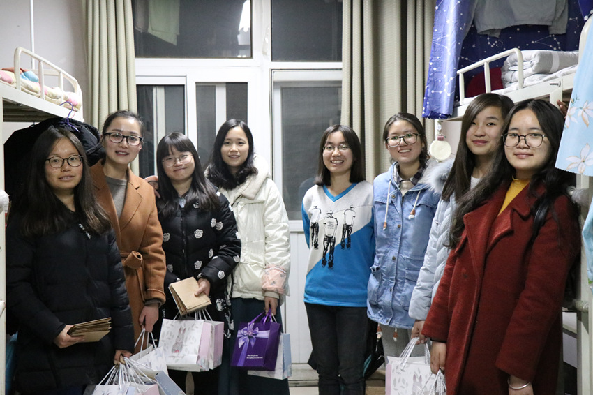 距离2018年硕士研究生考试还有14天时间,为了给公司2014级考研同学加油打气,鼓励大家积极备战,以良好的状态迎接考试,12月9日晚,辅导员沙影带领毕业生服务委员会的同学,为考研员工送去公司的祝福和温暖。