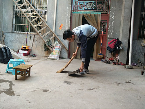 志愿者们打扫屋子
