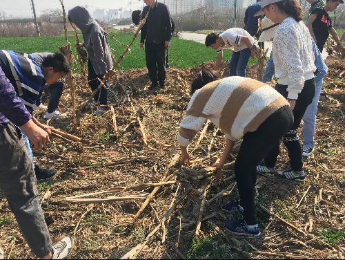 3月14日下午,1604班25名同学及南杨村两名村助一起来到了村民胡朋育的田地里,进行志愿服务。