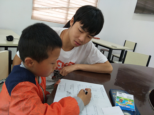 同学们为孩子们辅导功课