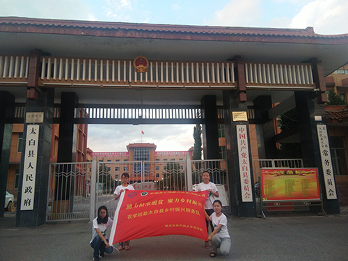 太白县位于陕西省西部,地处秦岭腹地,长冬无夏,春秋相连,是国家新一轮扶贫开发工作重点县和秦巴山区连片扶贫开发片区县。一大早队员们从杨凌火车站出发到达西安,经西安中转,乘车前往太白县。看着一路上的蓝天白云,青山绿水,队员们难掩激动之情,对习近平总书记说过的那句“绿水青山就是金山银山”深有感触。大巴车不断地向太白县前进,蜿蜒的河水,盘绕的公路,云雾缭绕的山峰,无一不像仙境一般。