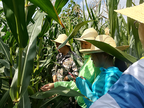 玉米试验田内讲解