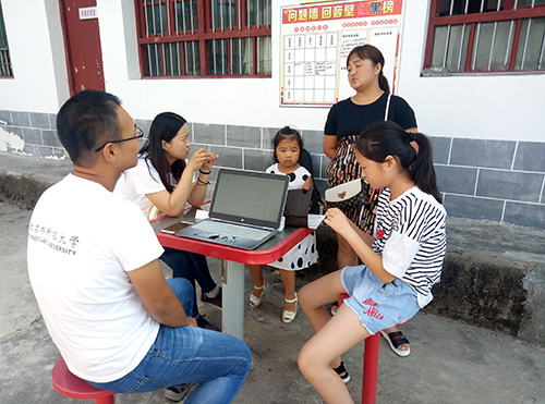 “哥哥姐姐你们终于来了”一个8岁的小女孩兴高采烈的跑向了支教队员的跟前,久久不愿离开。刚进村委会不多久,许多孩子在家长的陪伴下陆陆续续的从家里赶了过来,叽叽喳喳的围着队员们问个不停。