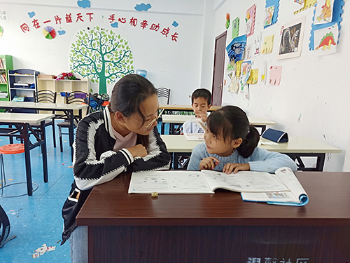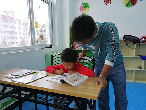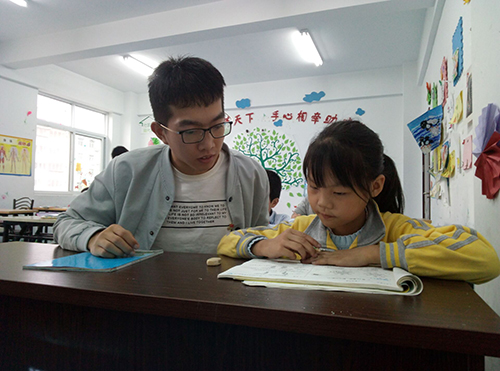 严圣吉同学为孩子们辅导作业