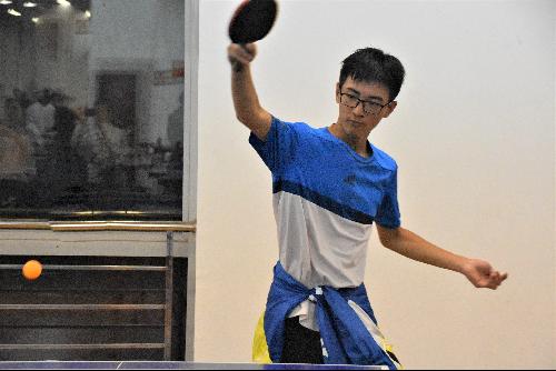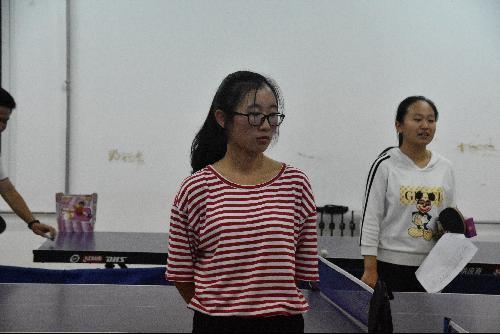 一颗颗小小的乒乓球在空中不停的飞跃旋转;一个个青春年轻的新生在球桌旁闪身跳跃。一声声小球磕在球桌上的声响;一双双闪动着火焰的双眸;一个个击球的动作,无一不彰显着紧张而又和谐的比赛气氛。观众在一旁热情的加油,裁判在场中一丝不苟,负责体育的薛老师在场边仔细观看。所有人一齐构成了一幅朝气蓬勃的运动画面。最终,来自六班的吴光宇同学摘得桂冠,叶平同学获得第二名,秦家祥同学获得第三名。