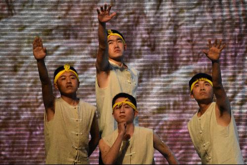 紧接着,音乐更加曼妙动人。紫衣女生和手捧书本的男生各自奔向两边的舞蹈队员们。她们一起看书,摆头对视微笑。音乐渐渐恬静舒缓,急促感随之而来。哗啦啦,好似暴风雨来临。她们变换队形,全场散开。脚步向前向后交替变换,手臂舞动富有张力,表情严肃目视前方。音乐逐渐震撼紧张,灯光明暗闪烁,舞蹈队员们不断变换位置。最后,她们汇聚在一起,动作似奔跑状向前拼搏,不畏艰险,一如当年赵洪璋先生为了农业的发展而不断努力拼搏向前的模样。灯光徐徐明亮,《麦神》表演结束了,舞蹈队员们鞠躬后有序退场。场下观众掌声雷动,有些同学甚至流下了眼泪,这眼泪是对长者的缅怀,对拼搏的尊重,对发展的骄傲。