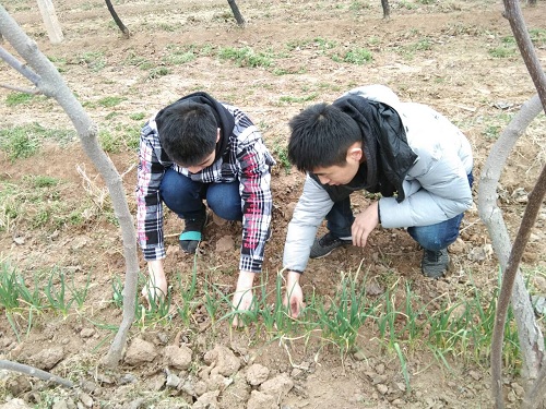 温暖的春天里,充满生机的不只是猕猴桃,还有坚韧的青草。猕猴桃的嫩芽还未在枝头大展身手,田地上的青草却已经轰轰烈烈的攻占了大片土地。在合作社负责人李爱霞女士的指导之下,365上市集团官网田园使者小分队的队员们迅速而有序的展开了猕猴桃园的除草工作。春天的草地格外茂盛,青草鲜绿的汁液和春日和煦的阳光一同洒在队员们的指尖上。在队员们的说说笑笑之中,太阳在西侧缓缓落下,汗水慢慢地爬上了队员们的额头上。在一整天的忙碌之后,猕猴桃园里的青草已经被勤劳的小队员们清理完毕。李爱霞女士不禁对队员们竖起了大拇指。