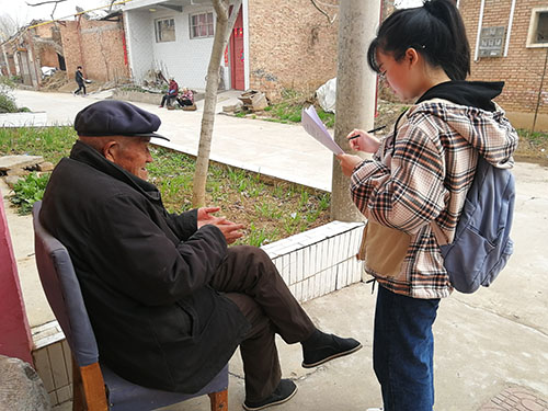 3月17日上午8点,上午组的同学们集合分组完毕,坐公交车分别到达了官村、陈家沟村。下车后,同学们划分了大致区域,随后一人或两人一组,到村民家中展开问卷调查。例如,斯木巴提同学调查的第一位村民是村里卫生所的张医生,说明来意之后,张医生十分乐意跟她分享有关村里的环境状况。在调查结束后,张医生还对她说了很多对环境问题的见解,例如村里的“垃圾站很不好”、“雾霾对身体危害极大”等。斯木巴提出来时表示自己一开始还挺紧张的,但村民们很朴实也很热情,说着说着就不紧张了。很多同学都是如此,他们面带微笑,遇到老人时,也会蹲下非常耐心的边聊天边调查,遇到孩子会随手给他们一颗糖,完全没有出现在公司调查时尴尬生硬的场面。中午12点半左右,同学们交齐问卷,一同坐公交车回公司。下午组的同学们下午3点出发,到汤村、陈家沟村进行问卷调查,到6点半结束。两组的同学们共做了 65份问卷。