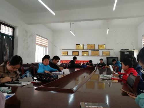 会议室内气氛活跃,除了完成周末作业之外,志愿者还担任起了小老师的任务,村助闫佳丽辅导的六年级杨蓥豪小朋友,在完成自己作业之后,主动提出想让小老师听写单词,闫佳丽同学听写完之后,又带领他预习即将学习的内容。小朋友们对知识的渴望和认真,切实触动了志愿者们。