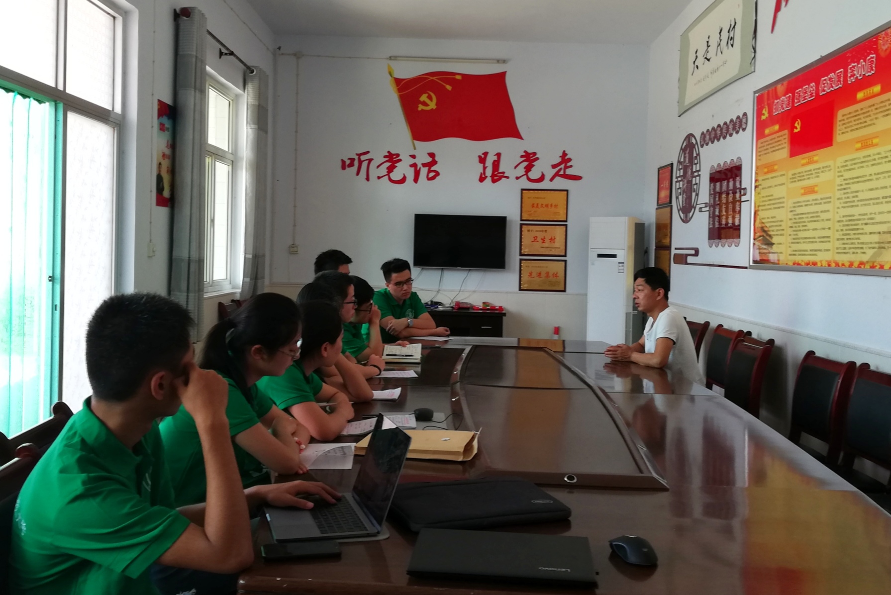 随后,书记给我们说明村子在发展中遇到的类似缺乏优势产业、缺少外来投资的问题,在开展村民工作时因村民文化程度相对较低遇到的一些阻碍,对此,队员们也向书记提出了自己的见解。