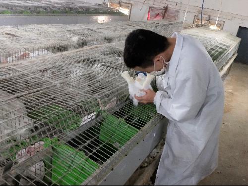 随后,队员们跟随工作人员来到兔子养殖场,里面的兔子数量多、个头大,皮毛品质好。在采访时,队员们发现,兔子繁殖能力极强,且因非洲猪瘟等因素的影响,兔肉在市场上供不应求。但由于每只兔子的利润较低,只有规模大的合作社才能有较高收益,农民自己养殖兔子很难赚钱。在提到企业中是否有兔子品种研究所时,工作人员表示,现在常见的肉兔品系都是法国的品种,虽然也有提升空间但提升空间不大,目前该厂主要研究改良獭兔的毛质,以及提高獭兔的生长速度。另外,在问及品牌培育时,负责人强调,品牌的发展离不开资金和技术的支持。一方面,对外宣传、品牌建设上都需要强大的资金投入,这些对于合作社来说都是负担。另一方面,若没有技术优势,产品在市场上也就没有竞争优势。
