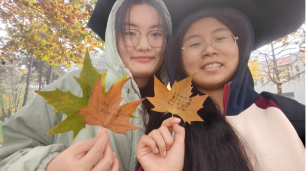 活动开场,主持人陶子通过PPT,向同学们详细阐释了活动背景、目的与意义,帮助同学们深入理解活动内涵。紧接着,同学们纷纷取出事先收集好的树叶,将心中对友人的祝福化作笔墨,认真书写在叶片之上。每一片树叶都承载着同学们真挚的情感与美好的期许,或感恩陪伴,或祝愿前程。书写完成后,大家满怀真诚地将这些承载着祝福的树叶赠予给朋友,并在镜头前留下珍贵的合影,定格这一温馨感人的瞬间。