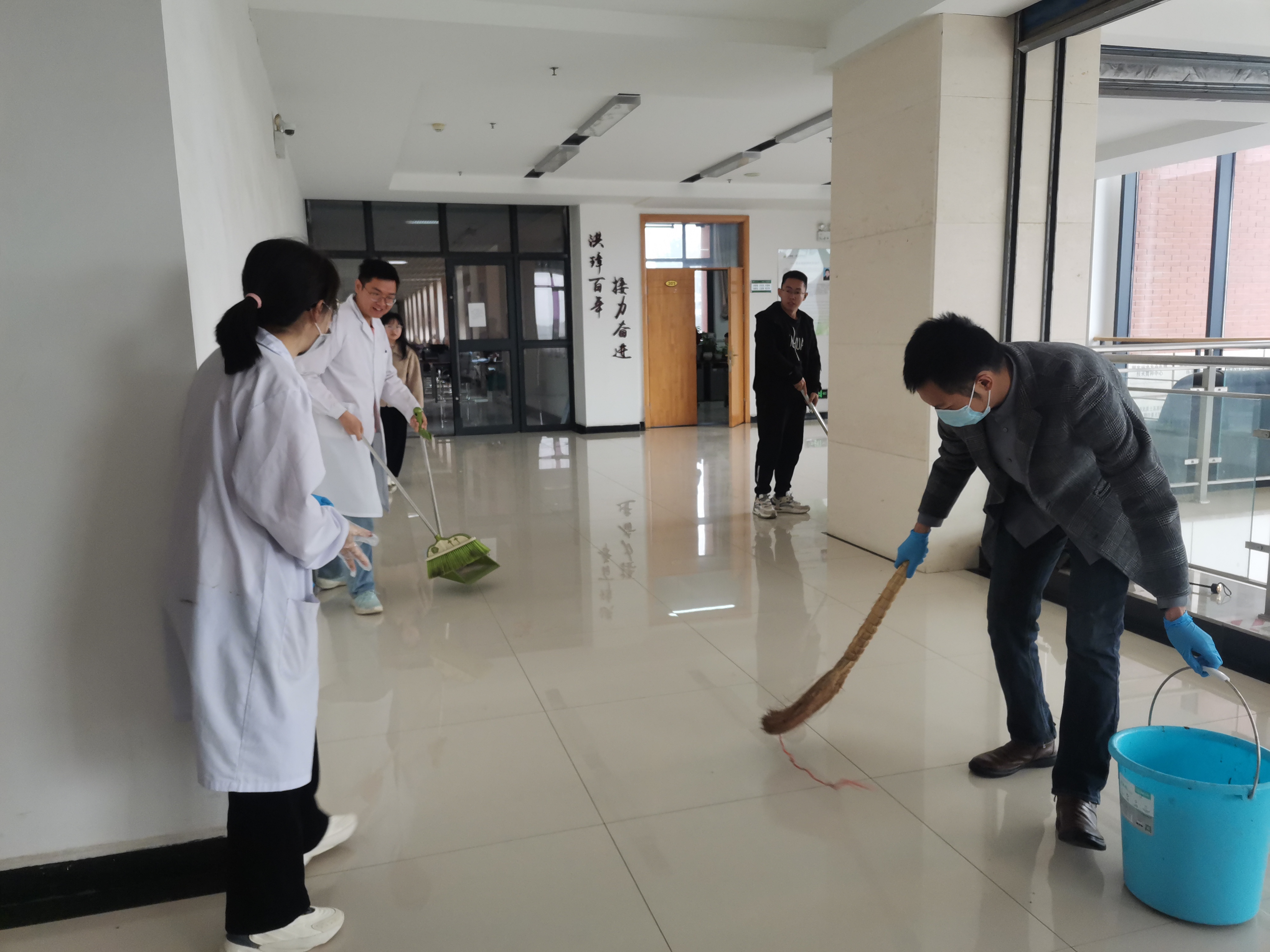 活动中,同学们对三楼连廊、大厅以及中间大厅的垃圾、杂物展开了地毯式清理。同学们拿起扫帚、手持垃圾袋,拿出不怕苦、不怕累、不怕脏的服务精神对重点区域进行打扫,清理卫生死角,营造一个舒适干净的科研及活动区域。