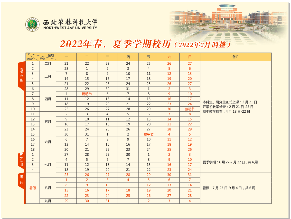 转:关于2021-2022学年夏季学期校历调整的通知