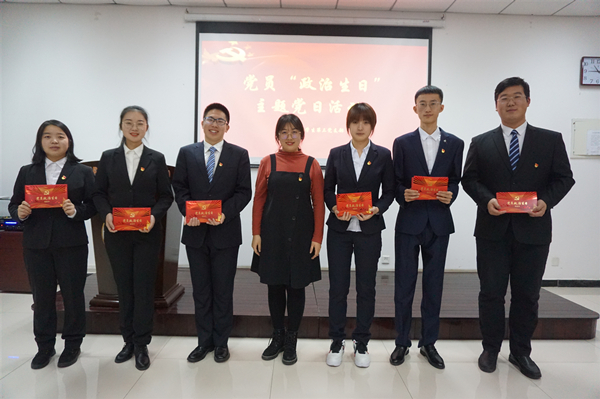 “在你加入中国共产党一周年这一重要的日子,党组织向你表示祝贺和问候!希望你牢记入党誓词,时刻以党员标准严格要求自己,永葆共产党员的先进本色!”活动伊始,党支部书记为每一位过“生日”的党员送上印有入党誓词、生日祝愿、书记签名的专属《党员政治生日纪念册》,小小的卡片中承载着党组织的关心、希望和鞭策,激励每一位党员时刻牢记共产党员的初心和使命。“今天的活动让我回想起一年前成为一名党员时激动的心情,在这一年的不断学习和锻炼中,我更加深刻的认识到了党员的含义。党员的身份让我时刻严格要求自己,激励我发挥先锋模范作用,今后我也会继续努力,用实际行动践行对党的承诺。”第一次过“生日”的党员王姿涵谈到。
