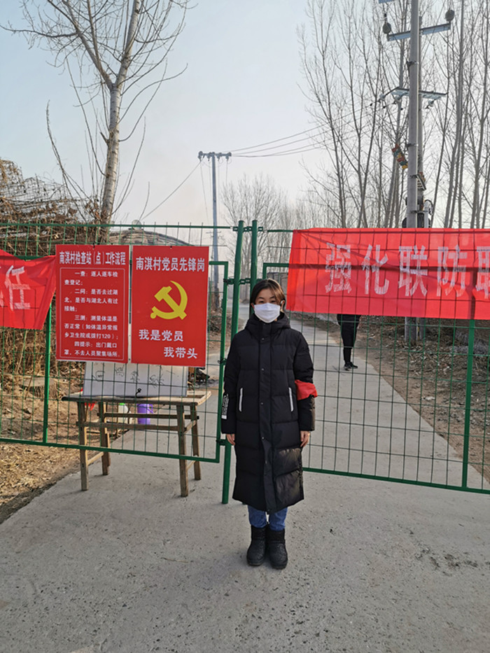 农学类1906班班长李佳欣自2月初起,就在家乡河北省保定市易县南淇村进行值班站岗抗击疫情志愿服务,把防控疫情作为自己的一份责任,她这样说道:面对疫情,村民都积极行动起来,前去为防控疫情服务,作为一名新时代老员工我更是义不容辞地加入其中。志愿服务过程中,我感受到了村民的热心,上午下午的热水、小吃;全村人的自觉,无私自一人外出;村干部及乡镇领导的重视,大家齐心协力,共同抗疫,天耀中华,我们必将战胜疫情,迎来一个温暖又美好的春天!