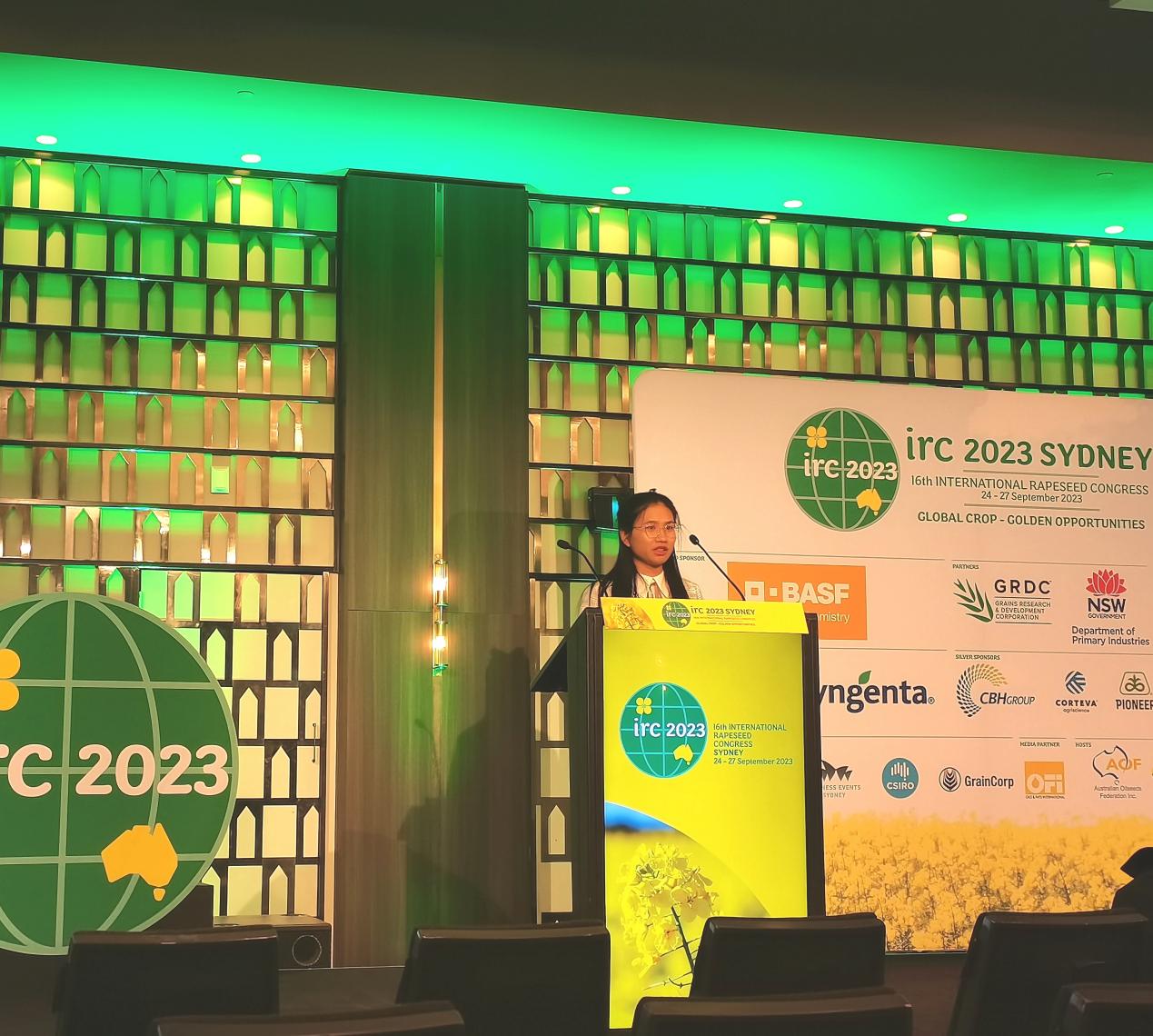 2023年9月22-27日,由国际油菜咨询委员会(GCIRC)主办的第16届国际油菜大会在澳大利亚举行,公司油菜种质创新及遗传育种团队徐爱遐研究员、李可琪博士和博士研究生徐宇参加会议并作学术报告。