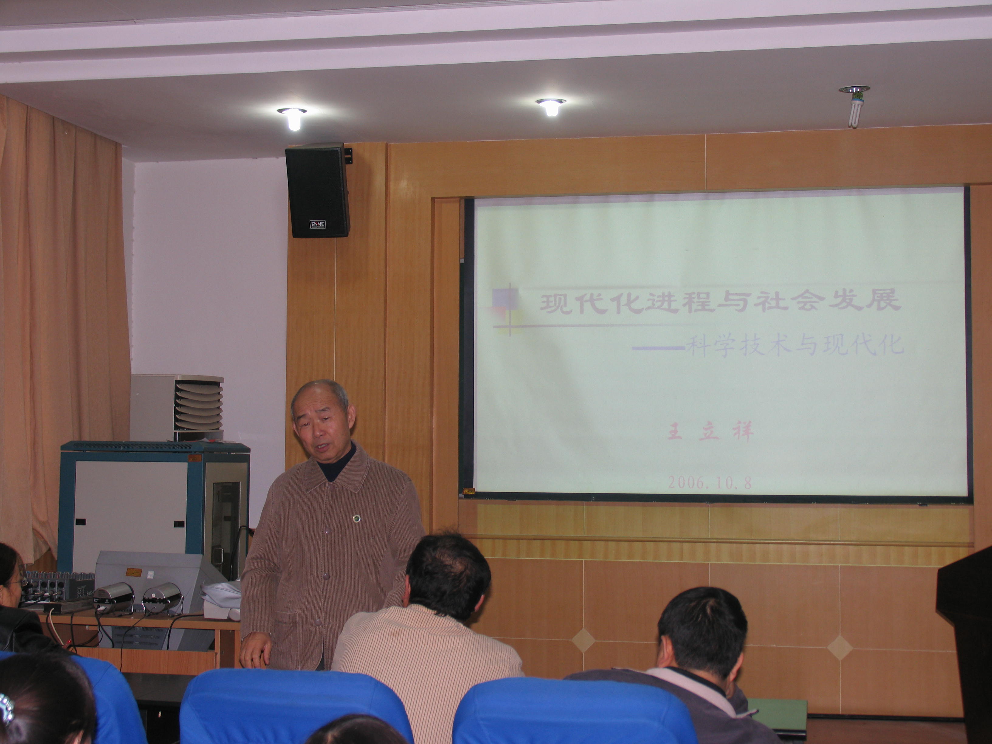 10月12日, 王立祥教授在公司多媒体室为公司科教人员做了题为《现代化进程和社会发展》的报告。报告以翔实的数据、生动的图片、精辟的语言全面诠释了“现代化”的基本内涵。回顾了人类社会发展进程,评述了我国在世界现代化进程中的现实地区,分析了我国现代化地区间不平衡的根本原因,明确了我国现代化发展时期的战略布局,指出了科学技术在现代化进程中的重要作用。
