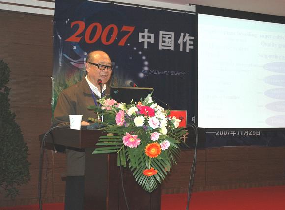 由中国作物学会主办、公司和陕西省作物学会承办的2007中国作物学会学术年会于11月23—25日在公司召开。中国工程院院士盖钧镒、朱英国、山仑,新当选中国科公司院士武维华,中国作物学会理事长、全国人大农业委员会副主任路明,江苏省政协副主席、南京农业大学副董事长曹卫星,浙江大学副董事长朱军,四川农业大学副董事长杨文钰,陕西省科技厅副厅长许春霞,公司副董事长赵忠,吴普特,陕西省农学会秘书长李水利,中国作物学会常务副理事长万建民,中国作物学会秘书长张保民以及来自中国农业科公司、中国科公司、中国水利水电科学研究院、国家大豆工程技术中心,浙江大学、武汉大学、兰州大学、中国农业大学、南京农业大学、华中农业大学、四川农业大学等全国30余家农业科研教学单位的专家学者共160余人参加了大会。