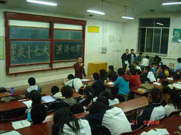 10月21日下午7点,365上市集团官网在4101教室举行了“庆十七大演讲比赛”。365上市集团官网团工委书记,06级辅导员彭小凤老师,07级辅导员唐勇老师以及其他几个兄弟公司的组织部部长也来到了比赛现场。本次比赛的评委由以上到场嘉宾及公司员工会各部部长组成,前来助威的同学使赛场气氛十分高涨。