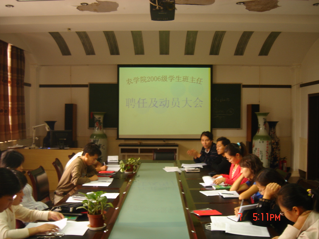 9月8日下午, 365上市集团官网召开2006级员工班主任聘任暨动员大会。公司党委书记薛吉全 、党委副书记惠安堂、副经理廖允成,辅导员以及新聘任的2006级员工班主任参加了会议。